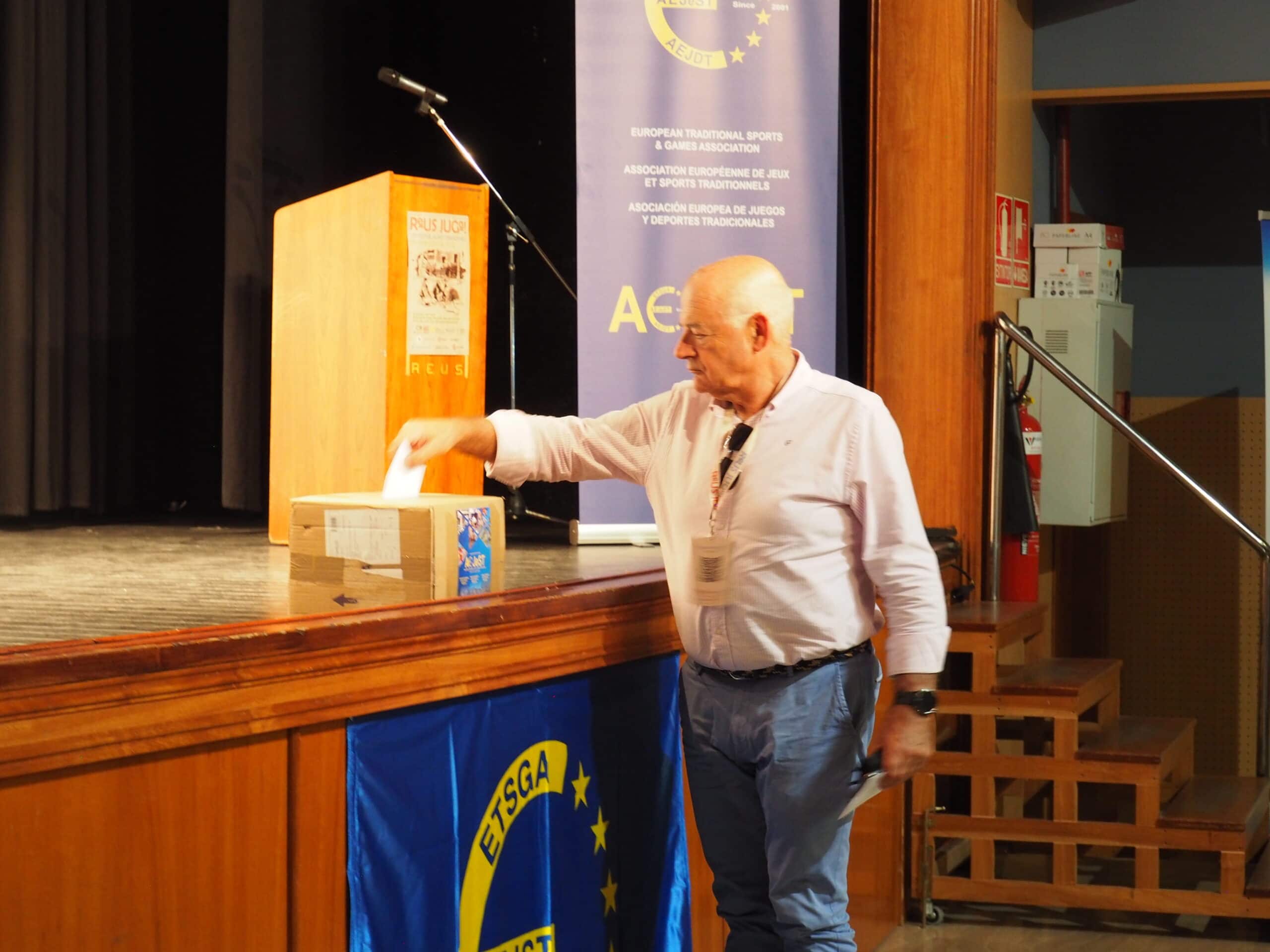 La tarraconense ciudad de Reus, la patria chica del arquitecto modernista Antonio Gaudí, del general Prim y del vermut, acogió la XXIV Asamblea General de la Asociación Europea de Juegos y Deportes Tradicionales. El encuentro europeo fue organizado, con gran éxito y acierto, por la Coordinadora Intercomarcal de Bitlles y Birles. La Fundación Bolos, miembro número 66 de la AEJeST, estuvo muy presente en la asamblea que estuvo presidida por el el tesorero Fernando Diestro -patrono de la Fundación- ya que el titular, Pere Lavega, se había visto obligado a dimitir del cargo de presidente para presentarse a la reelección. Tras la Asamblea ordinaria, se dio paso a la culminación del proceso para elegir a los 17 miembros del Consejo de Administración resultando elegidos, para dirigir el área económica, José Ángel Hoyos -que dejaba el cargo tras ocho años al frente de la secretaría general- y Juan Antonio Amenábar, secretario y presidente de la Fundación. Cantabria también vio reforzado su protagonismo en la entidad europea, desde su fundación en 2001, con la presencia de Julián Vélez, presidente de la Federación Cántabra de Bolos.